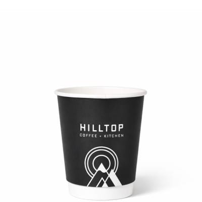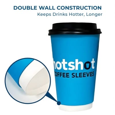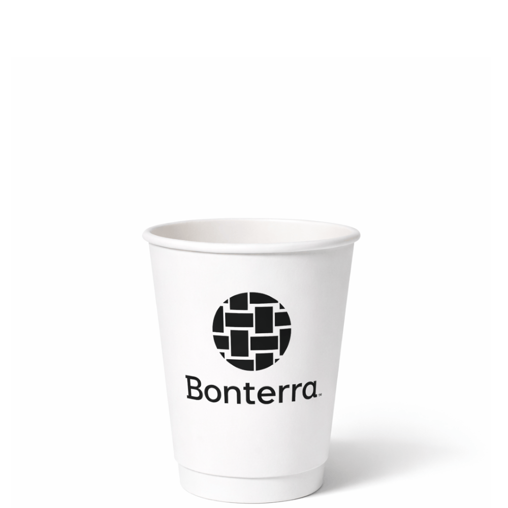 Our 8 oz double wall coffee cups are made from high-quality paperboard with a polyethylene lining, ensuring durability and heat resistance.